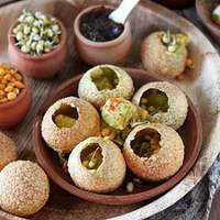 Vegan whole-wheat flatbread stuffed with a mashed potato filling flavoured with spices, cooked tenderly over a griddle until crisp, accompanied by an earthen pot of rich, creamy yoghurt and a tangy slice of mango pickle.